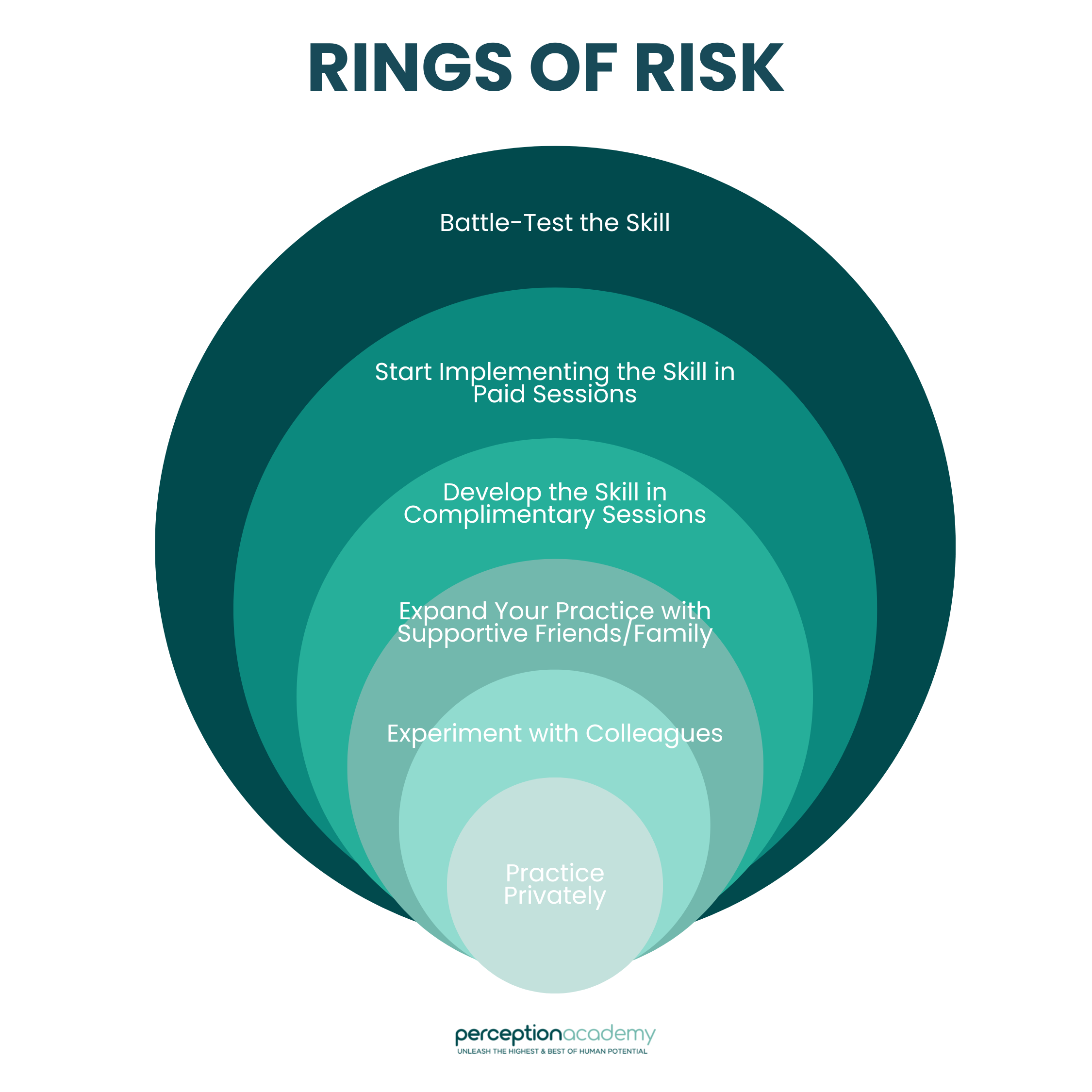 Whether it’s with a trusted friend or a paying client, imagine the difference it will make over the long run to continually implement that skill you’ve been wanting to develop while maintaining minimal risk. Would it make a difference when you apply the rings of risk to any new skill you’re wanting to develop? Would you become a ferocious learner? Perhaps you’d even become unstoppable!